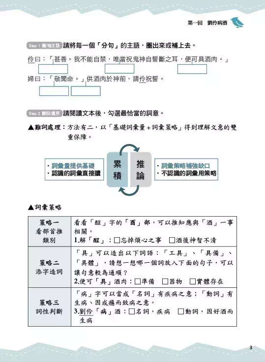 圈補主語、推敲難詞、轉譯詮釋、圖像思考——四步拆解文言障礙,讓閱讀策略可操作、可遷移。