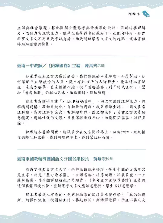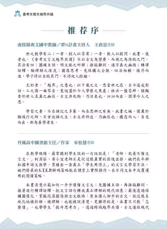 「國文要當理科讀。文言文其實是語意穩定、邏輯性強的文體,只要掌握正確方法,必能游刃有餘。」