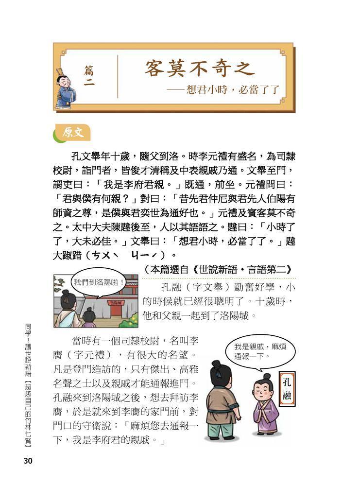 1.國學補充教材:收錄「王戎觀虎」、「小時了了,大未必佳」等代表性選文,是國小高年級銜接國中古文的優良讀物。