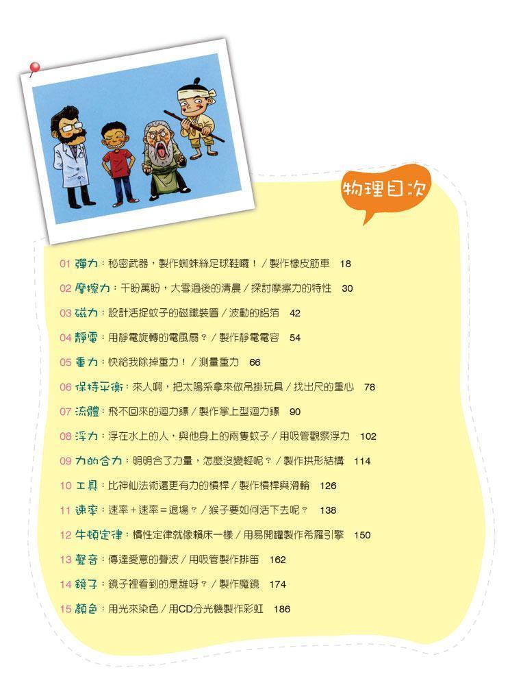 從科學原理出發,詼諧漫畫手法勾勒出看似瘋狂卻有原理可循的科學實驗,這是一套適合師生課堂腦力激盪、親子共同動手做的有趣科普叢書,邀您一同體驗科學世界的驚奇與奧秘!