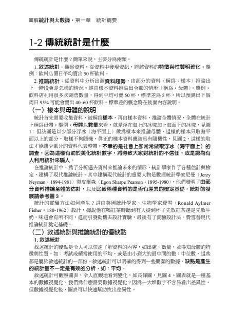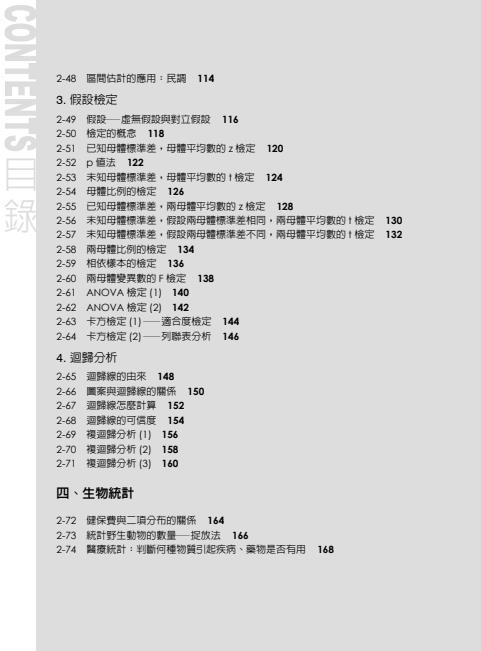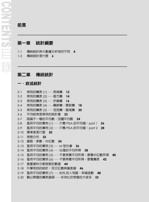 由於統計涵蓋相當大的領域,本書針對的對象為「小學到高中的學生及一般人的敘述統計」、「高中到大學的推論統計」、「社會人士所需要理解的大數據與統計」三大區塊。
