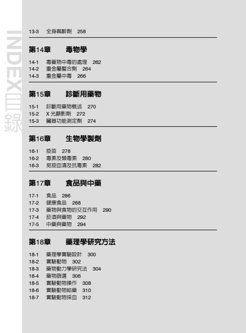 本書內容依高等考試藥師考試命題大綱及一般教科書編寫,更加入食品、中藥與藥理學研究法等章節,目的是要讀者能夠辨別食品與藥品以及中藥與西藥的不同;藥理學研究法可對藥理學的內容有進一步的認識。