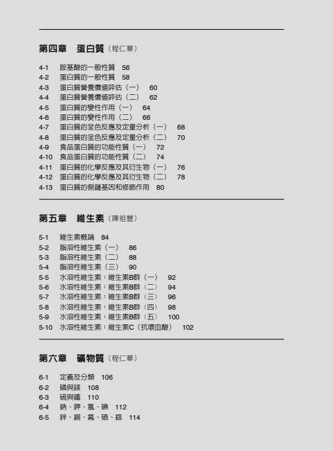 本書區分為基礎部分和專題解說部分,基礎部分主要是包括食物六大營養素的說明;專業解說則包括食品相關專題的說明。