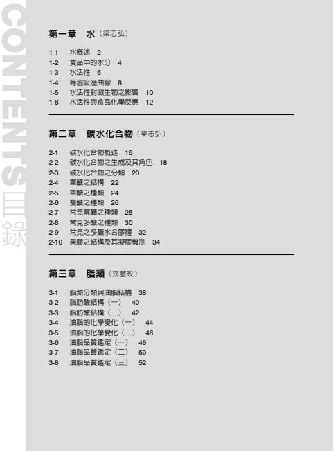 食品化學為食品營養科學專業中重要的基礎科學,本書特點為經由深入淺出的本文敘述,並搭配淺顯易懂的圖解說明,使讀者能很快的進入主題,充分了解。