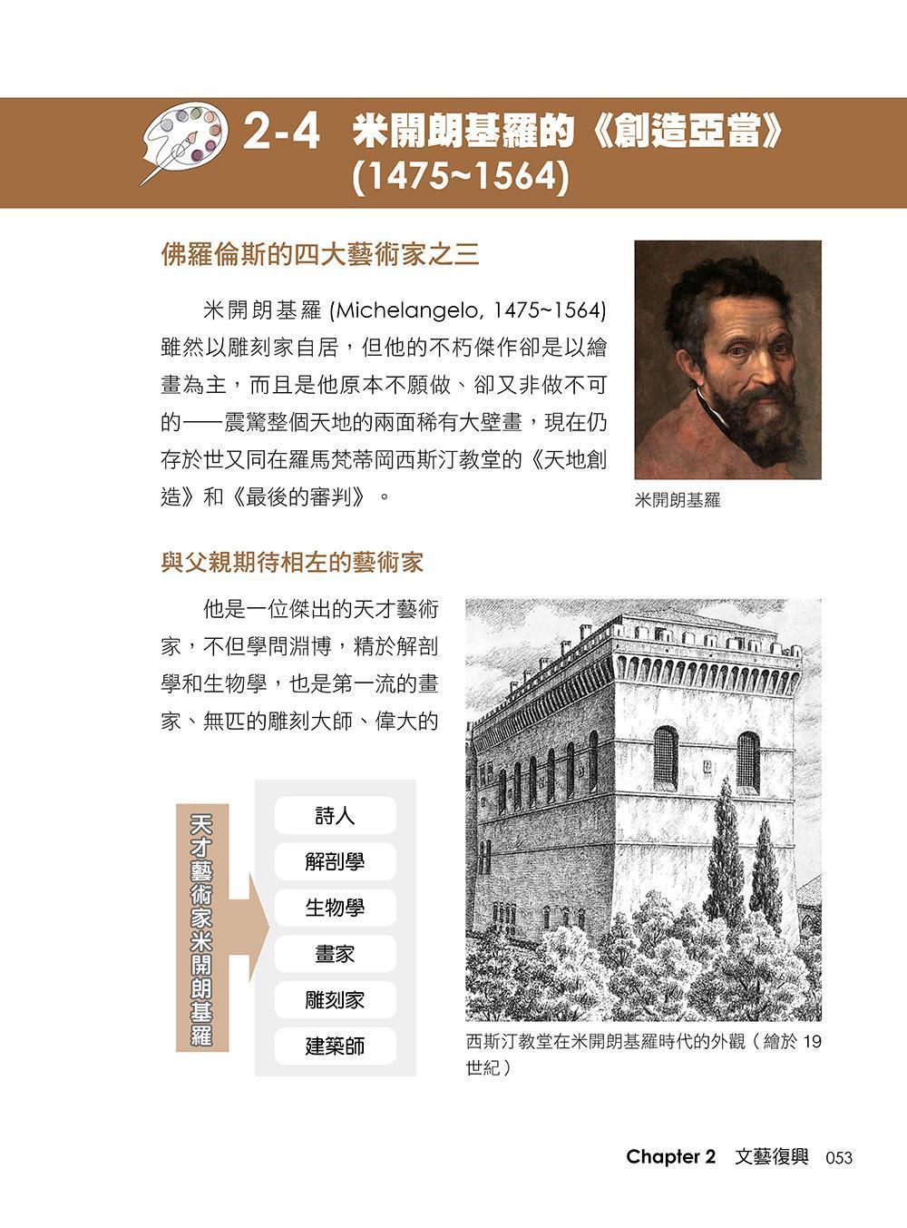 西洋藝術被劃分為許多風格時期,本書以年代為序,以派別為章節,向讀者介紹藝術史上最具代表性的藝術家,了解他們的經歷以及繪畫創作。