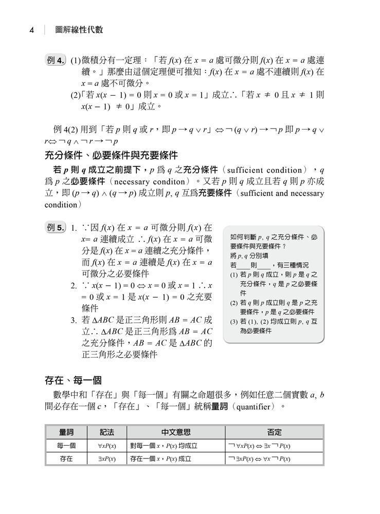 本書透過多解比較、公式提示、解題提示以圖解方式講述線性代數,使本書具親和力,有利讀者吸收,而收學習事半功倍之效。